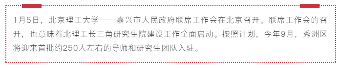 据了解,北理工长三角研究生院选址秀水新区,预计将在7月完成校园建设各项准备工作,力争开工建设。